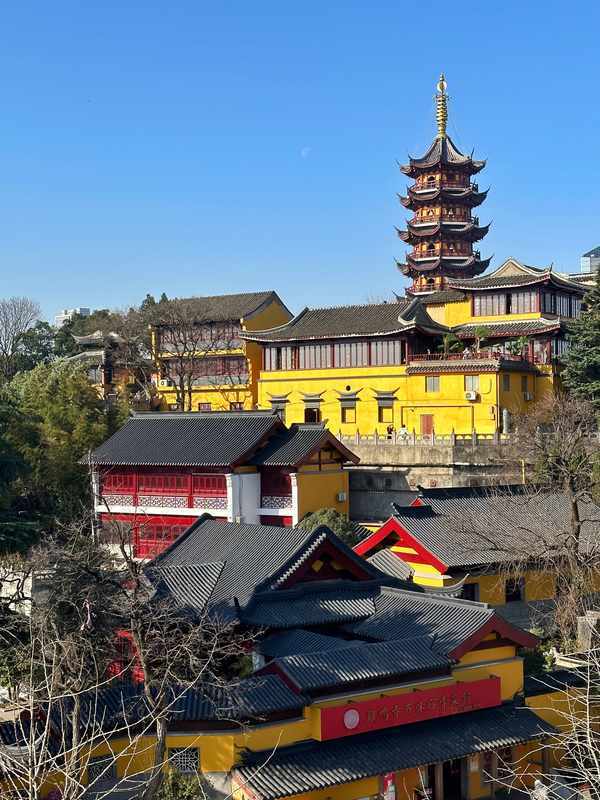 药师佛塔,以消灾延寿药师佛命名,建于1990年。塔高约45米,七级八面,斗拱重檐,是鸡鸣寺的标志性建筑。该塔主体为钢筋混凝土结构,外层用木结构装修。