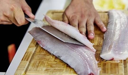 2、在切鱼片时鱼片的厚度尽量薄一些,这样才能保证鱼肉的Q弹。