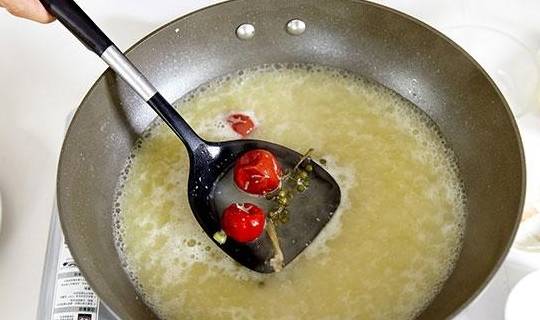15.往汤里放入灯笼泡椒三颗和鲜花椒两串。