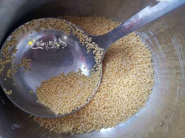 第二步:小米洗淨,小米的營養價值很高,含有人體所需的9種必需氨基酸、小米熬粥有"代參湯"之美稱。小米中的維他命B1,維他命E、鎂、鈣是大米的3倍多;膳食纖維、鐵、鉀、磷、硒是大米的2倍多;小米的不飽和脂肪酸是大米的4倍,對比兩者的營養成分可以看出,小米整體的營養成分都比大米高,所以我們做粥選擇小米營養更好。