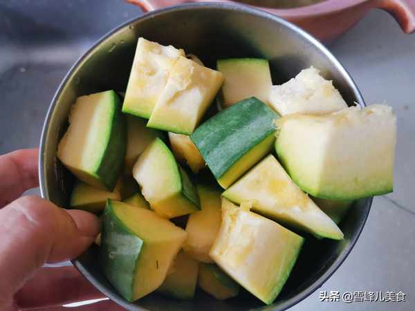 第三步:把南瓜切成大塊,這樣吃起來口感更好。