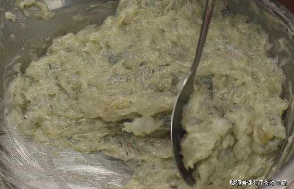 4、在剁好的虾蓉中打入一个蛋清,千万不要用蛋黄,容易影响色泽,加入少许食盐、鸡粉、胡椒粉、一点料酒去腥,顺着一个方向快速的搅拌,把调料打散,打至虾蓉起泡发黏,抓入一小把淀粉增加黏性,使劲摔打几分钟。这样吃起来更有弹性。