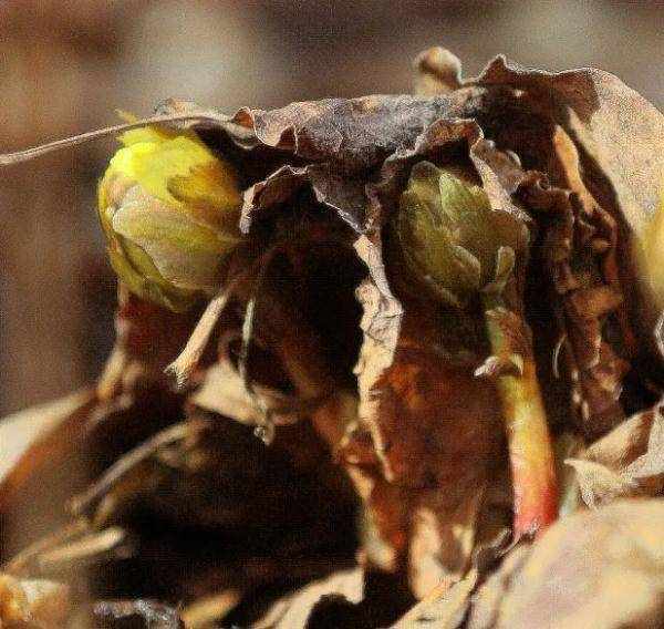 3月14日,在哈尔滨市雨阳公园内小花坛前生长的十几朵冰凌花,在寒风中绽放出黄色的花蕾,吸引不少市民前来拍照打卡。