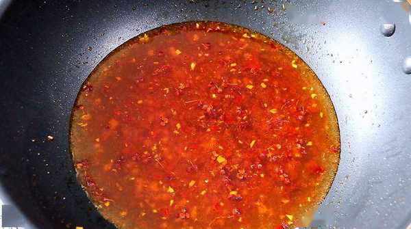 5、 锅中继续倒油,下入红干辣椒爆香,把热油浇在蒜末上面,在最上方撒一点葱末就可以了。