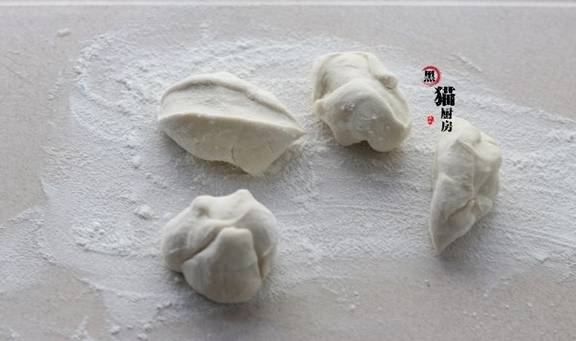 5.醒好的面团分成小块,撒上少许面粉防粘。