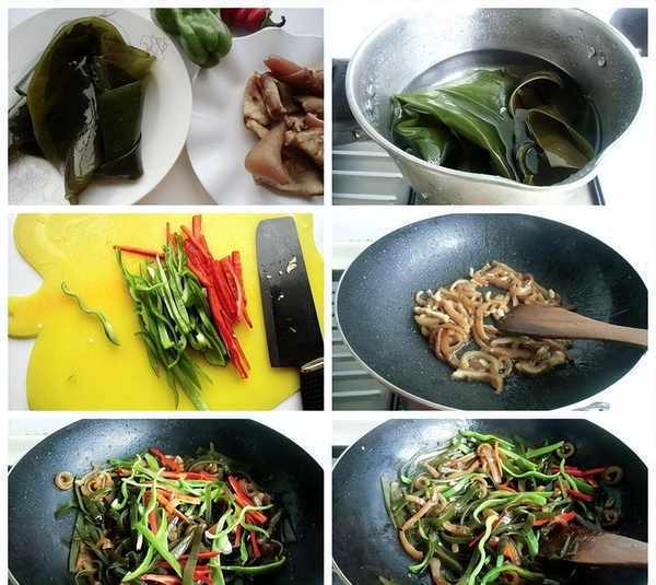 4、加海带、辣椒翻炒出辣味