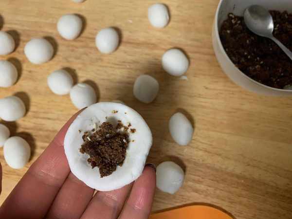 3、准备红糖馅料(根据自己的喜好可以准备黑芝麻馅料、花生碎馅料等)