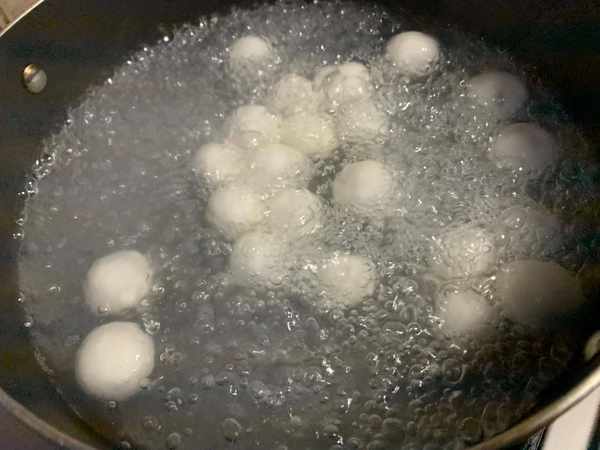 5、锅中烧开水,把包好的汤圆放入锅中煮制,待其浮起后,加入一小碗凉水,待水再次沸腾后汤圆就煮好了,即可捞出。