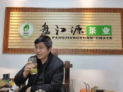 作为贵州普安盘江源茶业有限公司的创始人同时也是普安县政协委员的罗明刚,端坐在茶具旁,给客人一杯杯的沏着茶,时不时还聊着茶的故事。