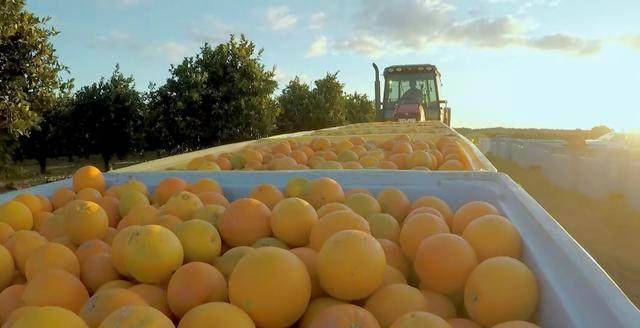 包括成熟的草莓、超市大堆码放的香蕉、批量出口的橙子: