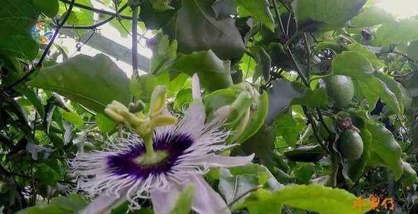百香果的花也算是相当艳丽了: