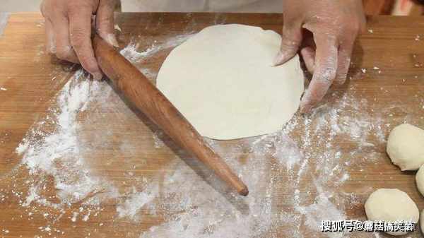 2.圆面坯团好以后不要着急擀饼,饧上10分钟再擀,更容易擀开、擀薄