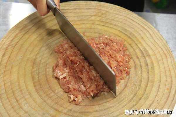 1.准备猪瘦肉一小块,清洗干净后先切成薄片,接着剁成肉末(剁的越碎越容易入味),剁好后放入盆中。