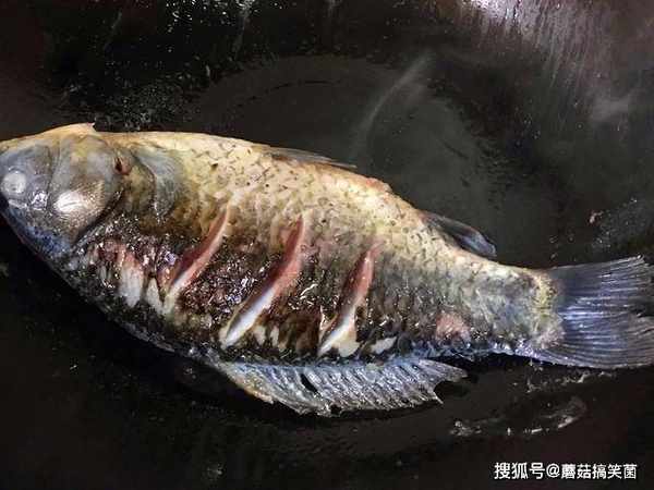 6、两面煎至金黄色,鱼身不破皮即可,加入五碗开水,水量要没过鱼身,一定要开水,小火改成中火,开始加热。