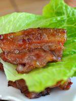 4、平底锅烧热后,刷薄薄一层色拉油。把腌制好的五花肉片两面用中小火煎熟即可,吃的时候用生菜叶卷着吃