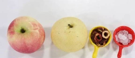 苹果1个/梨1个/山楂3个(干山楂5-8片)/大枣4个/冰糖少许