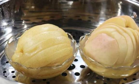 第3步:蒸好后,碗里会有苹果和梨的原汁,千万要留好,这可是这碗水果饮的精华所在,加上它,水果饮会变得更香浓,所有的养分也没有流失。