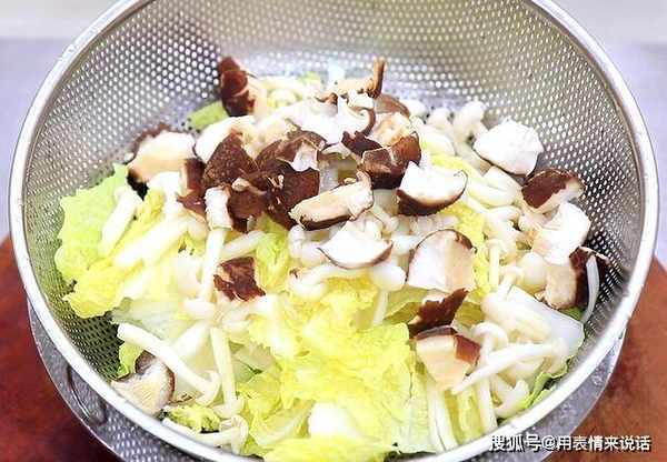 1.准备一棵白菜,切掉根部,把叶片一片一片掰下来,撕成小块清洗干净;白玉菇一小把,去除根部,把比较大的从中间撕开,清洗干净。