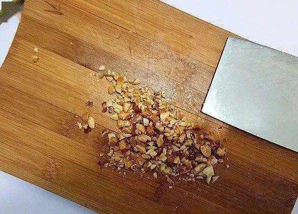 9. 调好的料汁直接浇在控干水份的菠菜平菇上,撒上准备好的花生碎。