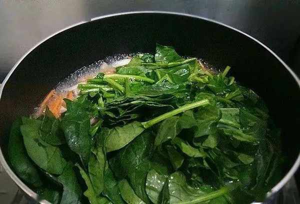 5. 菠菜也放入沸水锅中焯透捞出控水。