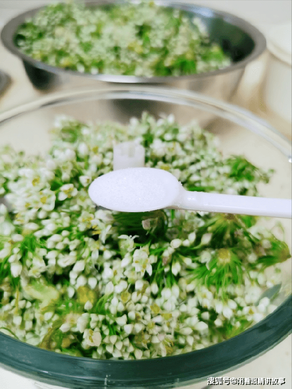 韭菜是我们生活中常见的蔬菜,成熟偏老的韭菜,会长出一朵小花,俗称韭菜花,韭菜花香气浓郁,能让人打开食欲,每年的这个时候,我都会采摘一些韭菜花,腌成韭菜花酱,吃火锅、拌凉面的时候,取出一勺腌好的韭菜花,顺然能提升香味,我们这里的早餐,习惯喝豆腐脑,一碗好喝的豆腐脑,离不开一勺碧绿的韭菜花酱,提升咸味和鲜味,尤其早晨这一会儿,闻到韭菜花的味道,食欲变得特别好,今天分享一个腌韭菜花的步骤,十几年的老配方,只加盐可不行,爱吃韭菜花的要收藏。