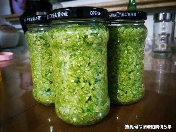 7、刚做好的韭菜花,味道偏淡,香味浓郁,如果不着急吃,可以冷藏放置7天,等到一周以后,那时的味道才正宗,香味彻底融合,蘸火锅、凉拌面都行。