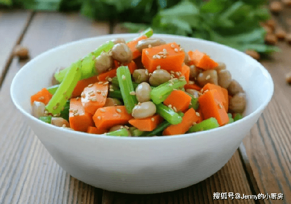 芹菜去掉叶子和根部,清洗干净,再切成小丁或者小段。胡萝卜去皮洗净,切成小丁待用。