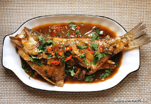最后大火收汁,放些小米椒圈、香菜段即可。