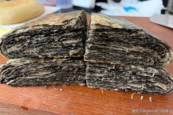 接着擀开,擀成一个大饼,擀好后静置十分钟。最后入锅将饼烙熟即可,烙好了切成小块食用。
