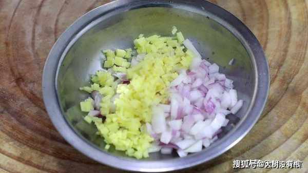 煮黄豆的时间,我们准备辅料,准备洋葱半个,切成丁,生姜一块,切成姜末,大蒜几粒,拍散后切成蒜末~