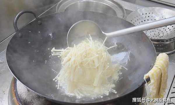 我们先把金针菇焯一下水,锅内烧水,水开以后放入金针菇,