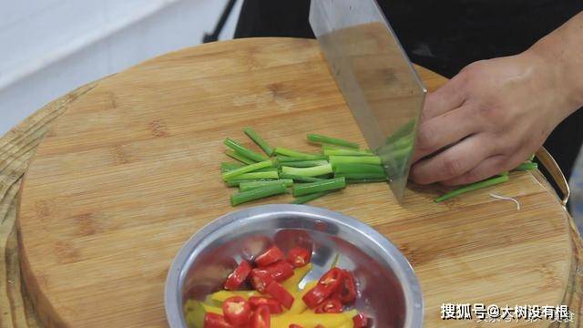 小葱一把 切成长段,大蒜拍扁剁成蒜末。