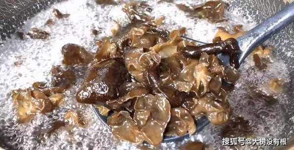 2.起锅烧水,水开放一勺食盐,一勺食用油,倒入木耳煮熟,控水捞出。