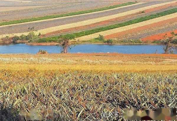 置身其中,仿佛被绿色的海洋包围,空气里飘逸着淡淡的清香,令人神清气爽。我第一次如此近距离感受“菠萝的海”,好像在欣赏一首轻柔的绿色田园交响曲。锯齿般的绿叶铺满大地,叶片上端托着一个个齿状的圆筒形菠萝,没熟的绿着,熟了的呈金黄色。登到高处,被对面“排山倒海”的七彩菠萝所震撼。一块块淡绿、墨绿、浅紫、微黄、橘红的菠萝田,线条分明,颜色轻快,真是一幅璀璨缤纷的优美画卷!朋友说,菠萝田园里一年四季色彩斑斓,不同季节种植的菠萝,各自穿着自己的新衣,泛出不同的色彩,相互争艳,组成了一道道鲜艳夺目的田园风光。我们行走着,沉醉在绿意萌萌的仙境中。