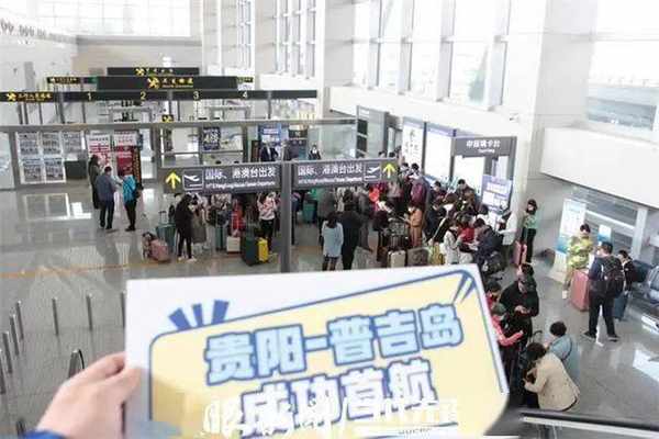 3月14日12:35分,贵阳龙洞堡国际机场飞往泰国普吉岛的AQ1201航班顺利起航。这是贵州三年来第一架直飞普吉的国际客运航班。
