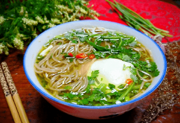 6、挑入面条,捞出荷包蛋,撒上切碎的香菜段,就搞定了,超级快手,好吃的把汤都喝光了。