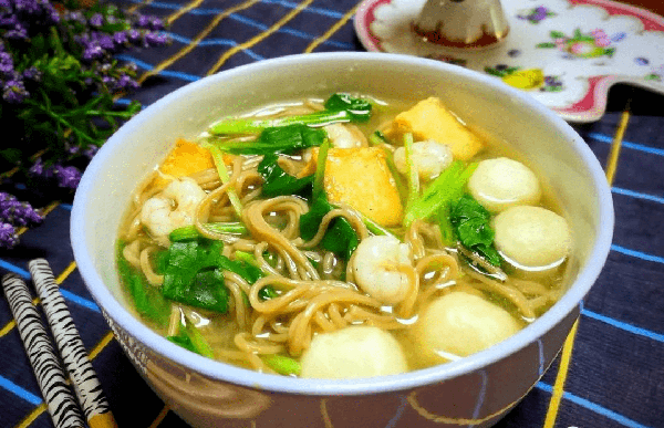 【鱼丸虾仁葛根面】