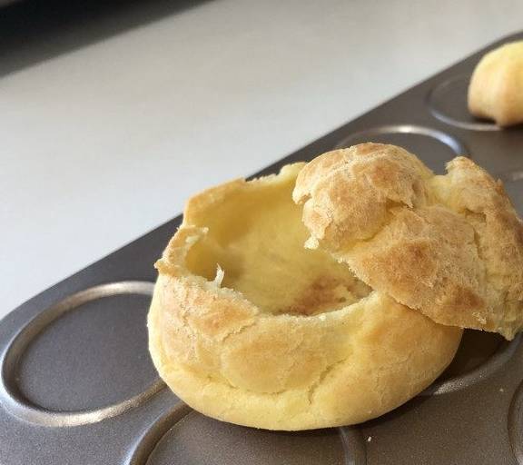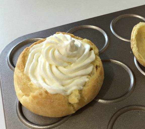 大的泡芙把顶部切开。