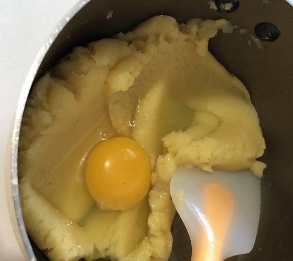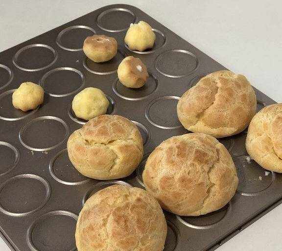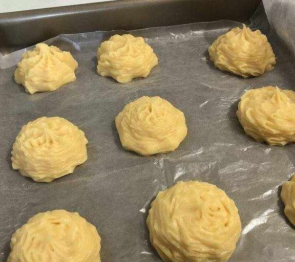 挤出九个大的泡芙。