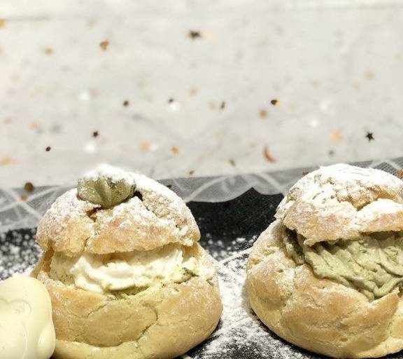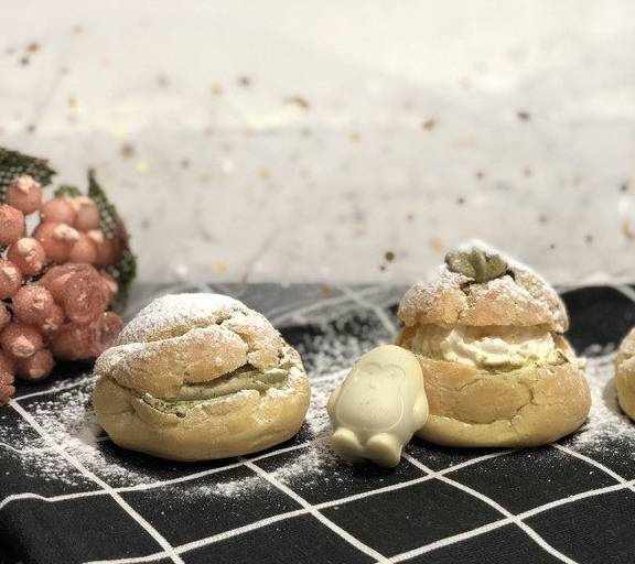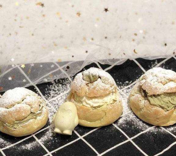 这个泡芙做的是大一点的,一口咬下去满满的奶油,吃起来很过瘾,抹茶口味的不会腻哦!