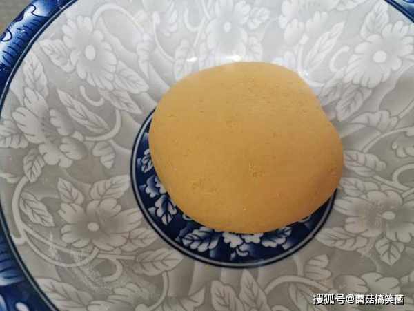 3、打好的红薯泥倒在一个大碗中,加入2克小苏打,红薯本身有甜味,我这里就不再加糖了,如果喜欢吃很甜的,可以再加一些白糖,然后加入250克面粉,搅拌成面絮,揉成光滑中等软硬的面团。