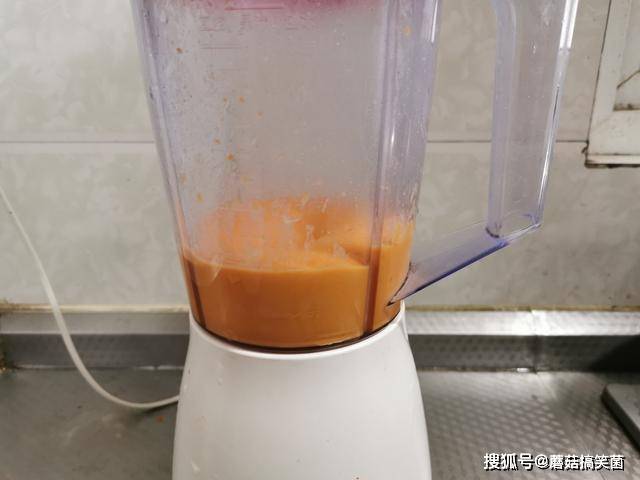 2、蒸好的红薯倒在料理机中,打入一个鸡蛋,打成细腻的红薯泥。