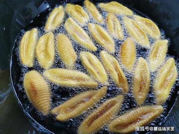 7、油温4成热的时候,放入做好的生胚开始炸,小火炸到微黄,捞出,升高油温之后,再复炸30秒钟即可。