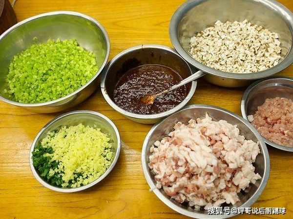 1、准备芹菜切成细末;香菇去根切成碎丁;一把小葱切成葱花;生姜切成姜末;一块五花肉和一块纯瘦肉切成小肉粒。
