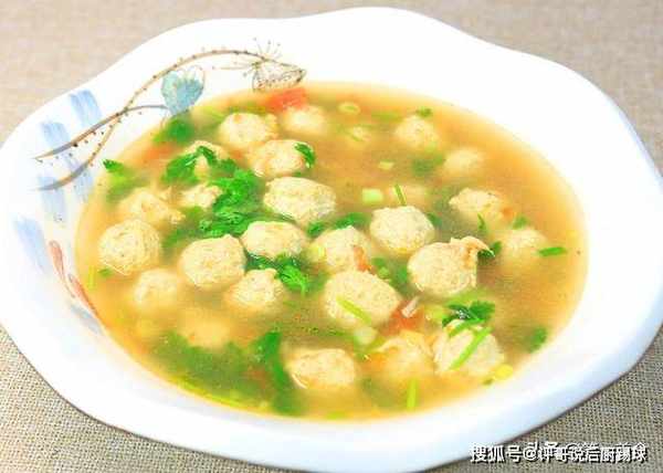 下丸子时要保持水温沸而不腾的状态,这样丸子既能生熟一致,又不会被沸水冲散。