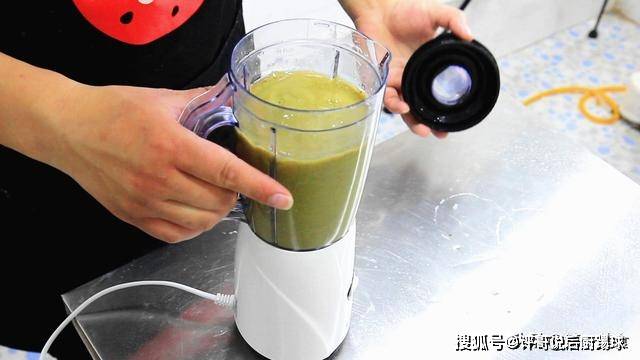 然后把绿豆倒入打浆机内,把绿豆和冰糖充分打碎。