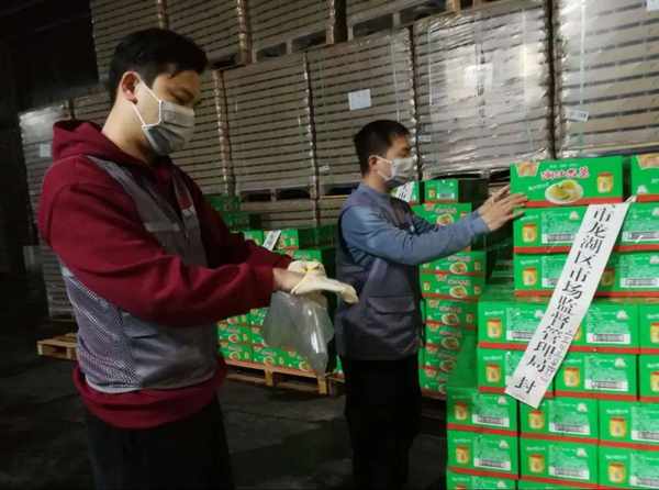当晚, 执法人员对汕头市桂盛食品有限公司、汕头市玉蕾食品实业有限公司等企业进行突击检查,针对被曝出存在食品安全问题的产品,执法人员对其进行 抽样检查和查封处理。接下来,汕头市市场监督管理局将对厂家存在的食品安全问题作进一步调查并依法处理。