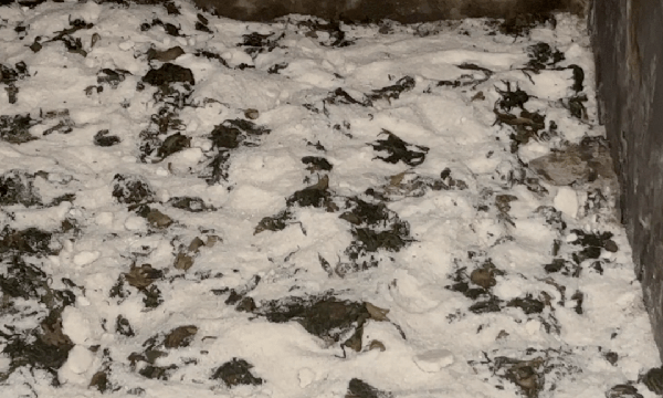 走近发现,这堆芥菜浸入泥水中,并已接近腐败,散发臭味。用木棍搅开,还可以看到一只只小的苍蝇,在芥菜上方盘旋。
