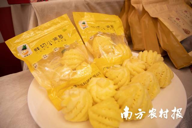 据悉,徐闻在全国率先发布鲜切菠萝团标准,培育生产鲜切菠萝新兴产业,目前已有18家鲜切菠萝加工企业。来自徐闻县珑腾发展有限公司、徐闻县诺香园农产品专业合作社、广东金菠食品科技有限公司、湛江三木食品有限公司等的菠萝鲜果、鲜切菠萝产品纷纷亮相。