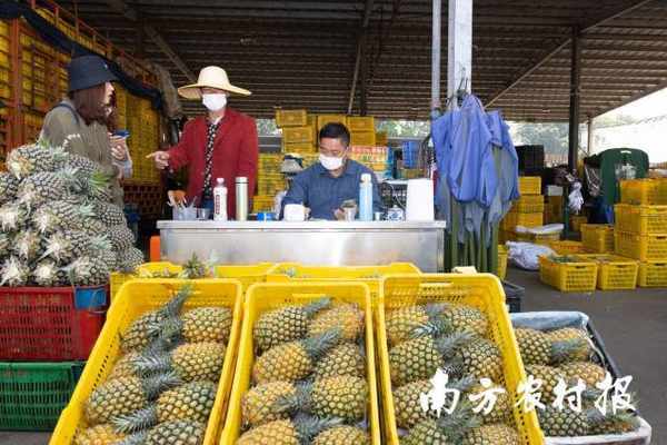 每天凌晨,满载徐闻菠萝的货车一辆接一辆驶入首衡集团旗下批发市场,档口老板们等候多时。他们一边清点菠萝,一边安排工人卸货、装车,徐闻菠萝从这里出发,销往京津冀。首衡批发市场是北方最大的农产品商贸流通平台,入驻商户8400余户,2022年实现果蔬交易量1620万吨,交易额突破1190亿元。